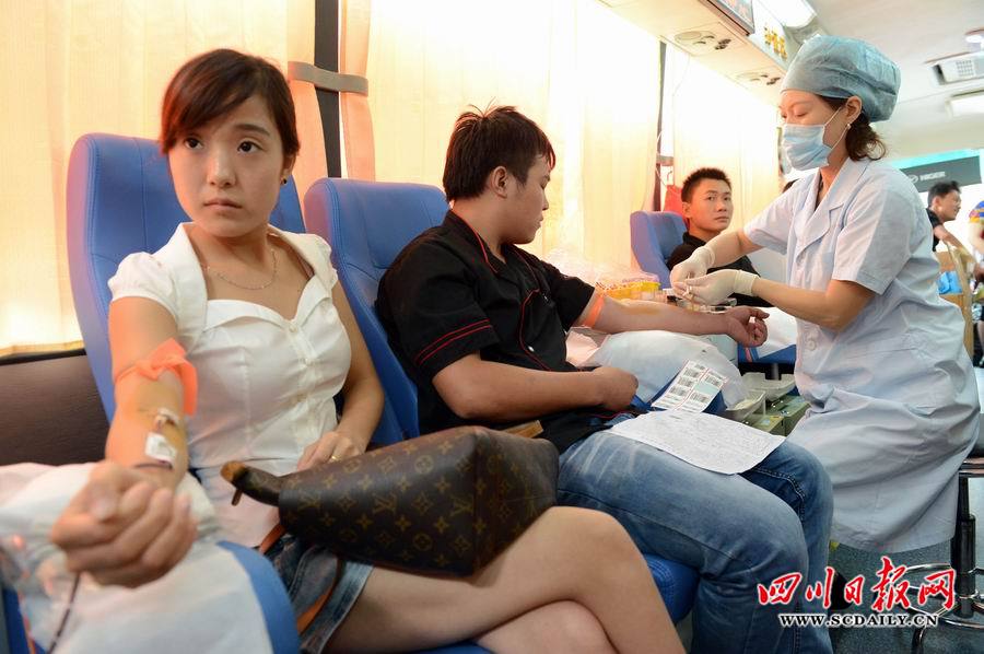 受暴雨天氣和放暑假的影響,連日來,成都市獻(xiàn)血人數(shù)急降,成都市血液中心各種血型出現(xiàn)緊張現(xiàn)象。7月23日,當(dāng)?shù)弥啥际醒褐行难獛?kù)出現(xiàn)緊張現(xiàn)象后,成都市武侯區(qū)玉林街道辦倪家橋社區(qū)黨委、武侯區(qū)玉林街道辦倪家橋社區(qū)區(qū)域化黨委聯(lián)合開展“共筑中國(guó)夢(mèng)、志愿我現(xiàn)行”無(wú)償獻(xiàn)血活動(dòng),組織位于該轄區(qū)的四川省開元集團(tuán)、四川匯力農(nóng)資連鎖有限公司、禾風(fēng)料理、何日君溫泉酒店等13家企業(yè)120名員工來到成都市血液中心積極鮮血,當(dāng)天共獻(xiàn)出了2萬(wàn)毫升鮮血。(四川日?qǐng)?bào)記者 李向雨 攝影報(bào)道)