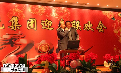 聯誼會包括游戲、表演、抽獎三個環節,整個活動現場從開場到結束都熱鬧非常,短短的兩個小時,讓大家在歡笑和吶喊中度過,大家在觀看各部門表演的同時,也積極參與各個游戲環節,贏取主持人口袋里的紅包,最終財務部的大合唱“國家”、人力資源與進出口部的“一年高歌秀”礦業李總的“向往神鷹”以及進出口的情景劇“我們這一年”分獲節目組一二三等獎。(圖一為副總裁李后蜀、劉仲輝齊唱《向往雄鷹》;圖二為集團財務部大合唱開元版《國家》)。